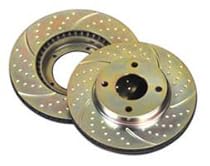 Dimple drilling avoids stress cracks and the new gold anodized EBC finish provides great looks whilst preventing corrosion EBC sport rotors